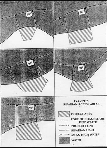 (c) The replacement of an existing dock or pier facility, including associated structures, marsh enhancement breakwaters, or groins shall be set back 15 feet from the adjoining property lines and the riparian access dividing line. The line of division of riparian access shall be established by drawing a line along the channel or deep water in front of the property, then drawing a line perpendicular to the line of the channel so that it intersects with the shore at the point the upland property line meets the water's edge. Application of this Rule may be aided by reference to the approved diagram in 15A NCAC 07H .1205, illustrating the rule as applied to various shoreline configurations. Copies of the diagram may be obtained from the Division of Coastal Management. When shoreline configuration is such that a perpendicular alignment cannot be achieved, the pier shall be aligned to meet the intent of this Rule to the maximum extent practicable. The setback may be waived by written agreement of the adjacent riparian owner(s) or when the two adjoining riparian owners are co‑applicants. Should the adjacent property be sold before replacement of the structure begins, the applicant shall obtain a written agreement with the new owner waiving the minimum setback and submit it to the Division of Coastal Management prior to initiating any construction of the structure.